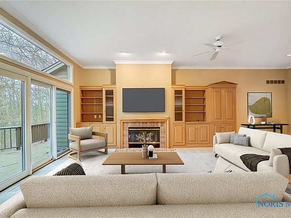 Nestled on a stunning ravine lot, this beautiful home offers quality throughout with breathtaking views of nature from the decks from the formal dining room, living room, and primary bedroom. The spacious kitchen features Woodmode cabinetry, an island, and a cozy eat-in area, while the expansive living room has a fireplace, built-in bookshelves, a wet bar, and striking windows that flood the space with natural light. Each of the three bedrooms comes with its own private bath, providing comfort and convenience. Photos are virtually staged.