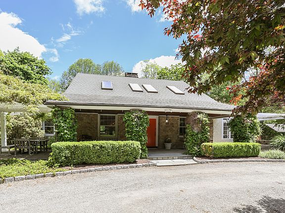 From the moment you drive up you'll know you've found a special home! A relaxing and peaceful country setting with a story-book provenance dating back over a 100 years, this former hunting lodge, is just moments to everything Ridgefield has to offer: restaurants, village shops, coffee bars, etc. This stone and stucco antique home offers many rooms for everyone, each filled with character and authentic charm. Featuring over 4,000 square feet including 4 bedrooms, 3 Baths, 2 fireplaces, flexible space for multiple home offices and stainless/granite Kitchen. The highlight is certainly a voluminous double height Great Room with vaulted ceiling, exposed beams and a floor to ceiling stone fireplace. Dining Room boasts the 2nd fireplace. Master bdrm includes custom built-ins and recently renovated ensuite bath. The 2 acre yard lives as an extension of the home with access from the Kitchen and Sunroom through custom French doors with screens. The expansive patio, porch and new deck surrounding the home extend the entertainment space in warmer weather. Stepping stones lead to the in-ground pool set off discretely from the home surrounded by a private border of mature trees and landscaped grounds incl hydrangeas and peonies. 2 outbuildings perfect for storage, potting shed, etc. This house has the coveted combo of proximity to town, privacy, pool, on a cul de sac, land, complete with perfectly preserved period details. An incomparable compound for year round enjoyment...or an idyllic weekend retreat.