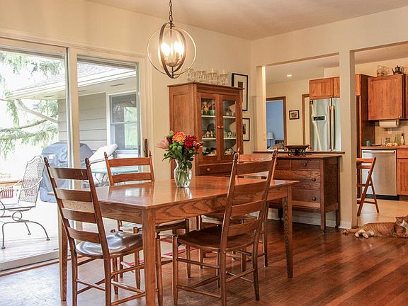 Belle Sherman 5 BR, 2 Bath Midcentury Modern. Single-Level Living! This streamlined classic on a quiet street has an intelligent floor plan -- it feels bigger than it looks! Open Living Area, Hardwood Floors, Woodstove. Foster Custom Kitchen opens to the deck & the kitchen herb garden. High-end stainless appliances, hickory cabinets & marmoleum floor. Main Level Master. Offices. 30 Year Roof. Low-E Windows. Deck. Veggie Garden. Lofty evergreens & Perennials. Fenced Yard overlooks Cornell Forever Wild land. East Ithaca Rec Way. Walk to Belle Sherman School & Cornell. This could be THE ONE!
