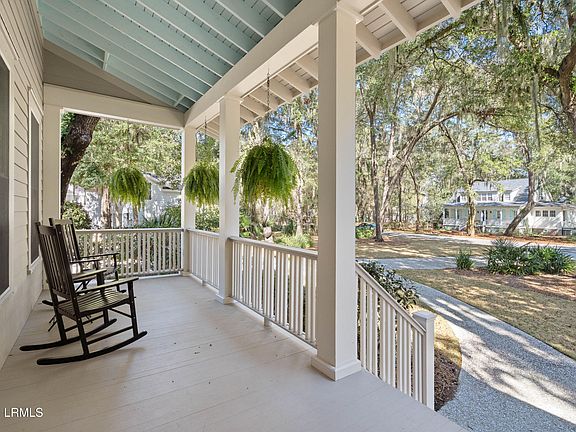 Custom home in beautiful Coosaw Point. This one owner home with loads of detail is on a large lot that backs to a common area. Beautiful trees and landscaping surround this Lowcountry jewel designed by Allison Ramsey and built by Allen Patterson, a local builder. You'll enjoy the formal dining room and the great room opening onto the back porch. Primary bedroom and office are downstairs. Upstairs offers a spacious loft with 2 bedrooms and 2 baths. The reclaimed pine flooring, custom kitchen island countertop, and quartz countertops, built-in shelving and plantation shutters add to the detail of this home. You'll appreciate the abundant storage areas and a large pantry. A gas fire pit and patio and deep porch call you outside. Deep 2 car garage with a workshop. This is Lowcountry living.