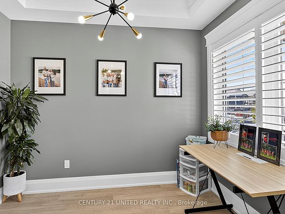 This stunning large 5-year-old Dietrich-built home in Peterborough's sought-after North End blends luxury and comfort. Featuring 4 bedrooms + office and 3.5 baths, it showcases soaring coffered ceilings, quartz waterfall island, heated bathroom floors, California shutters and a fully finished laundry. The primary suite is a retreat with custom walk-in, fireplace, and screened sunroom. Each bedroom has access to it's own en-suite or semi-ensuite. Basement is framed and ready with egress windows, rough-in bath, cold cellar and large windows to get creative and make your own. On the outside, enjoy epoxy-finished double garage, double wide driveway that will be paved at the end of the month with ample parking, fully fenced yard with deck, shed, and gas hookup.