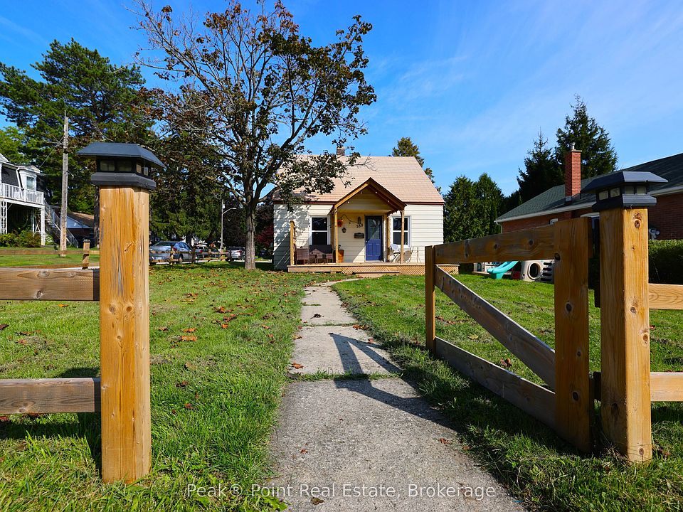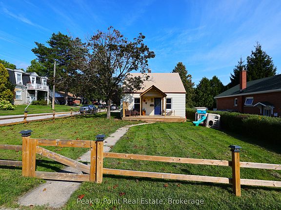 Looking for a Move-In Ready Owen Sound Home for Your Family? This quaint 1.5 storey Home is located on the west side of the city, tucked away on a lovely corner lot. The pretty front and side yards are great spaces for your kids to run and play. The mature hedging & partially fenced yard offer great visual yard boundaries. There is ample room for parking in the side/back driveway. There is a bonus detached garage/workshop which is a great space to putter, or for extra storage. Coming inside youll find the living space warm & welcoming. 3 Bed/1.5 Bath. The ground floor houses the main living areas. The kitchen is a highlight, featuring honey-colored wood cabinetry, nice appliances, and a unique custom coffee/food prep/serving station. Adjacent is a bright dining room with hardwood floors and a statement light fixture. The living room is spacious and inviting, with comfortable seating and lots of natural light from the large windows. A practical laundry room includes built-in storage and a washer/dryer set. The main floor bathroom showcases a mix of traditional and contemporary elements with a wooden vanity and tiled shower. The main floor bedroom is a great size and features built-in drawers & closet. The upstairs space accommodates two additional bedrooms + 2pc. Bath. The master bedroom is bright & has double closets. Throughout the home, hardwood floors, neutral wall colors, and rustic accents create a warm, cohesive, inviting atmosphere. The property's efficient layout and blend of modern amenities with charming details make it an appealing family home. The on-demand hot water heater & hot water rad heating make the utilities very economical & an added plus!