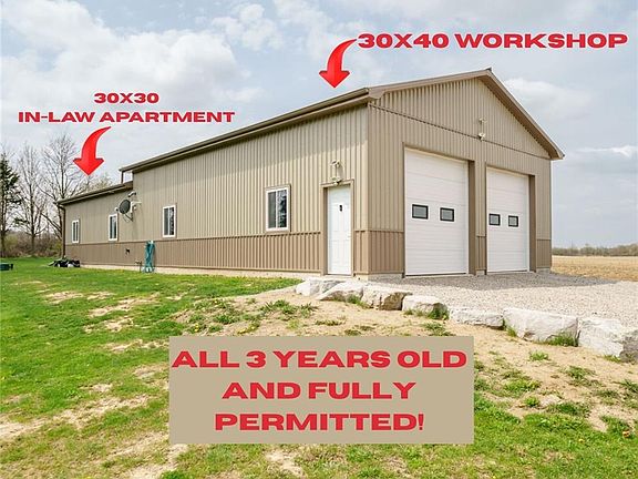 Phenomenal opportunity for multi-generational living or income potential in rural Hagersville! This stunning property is value-packed, featuring a lovingly maintained 3+1 bedrm raised bungalow with a fully finished basement and in-law potential(separate entrance), and the 3 YEAR OLD, FULLY PERMITTED, 30X40 WORKSHOP+JAW-DROPPING 30X30 1BED+1BATH APARTMENT DETACHED FROM THE MAIN DWELLING! All proudly presented on a private 1.06 acre lot with no neighbours to the South and West! The 1979 built family home is move-in-ready and offers many updates and features throughout! Just under 2500 sqft. of finished living space, roof'10, Cistern (4500 gallon under garage), septic '18+expanded in'22, doors+windows'12, gas furnace+A/C'16, water heater'23, all new appliances since'20! The flowing layout offers a great entertaining space, ample kitchen cabinetry, patio doors to rear 2-tiered deck, spacious bedrooms w/closets, main bathroom w/generous storage. The lower level boasts an open concept, carpeted rec room, an additional bedroom+ a den w/walk up access to garage, oversized laundry room with beautiful cabinetry (easy kitchen conversion), and a 3 piece bathroom! A significant amount of gravel and amour stone laid throughout the property+firepit area. Rogers fibre optic internet! SHOP FEATURES: 12 ft ceilings w/scissor trusses, 10 ft doors, 2 post 9000lbs hoist, metal clad interior, concrete floors w/in floor heat, separate 200AMP service, interior water faucet + wash tub, 40AMP weld plug, spray foam insulation! APARTMENT FEATURES: Open concept layout(accessible), 3 piece bathroom with roll in shower, 10 foot ceilings, massive kitchen with s/s appliances, in floor heat, luxury vinyl flooring, mini-split a/c unit, shared gas and water w/ house, 16x23 private concrete patio! Curb appeal is 10++! Don't miss the chance to own this very desirable property on a quiet country road in sought after location. 8 minutes to Hagersville, 10 minutes to Caledonia, 30 minutes to Hamilton!!
