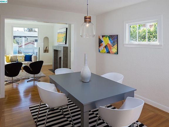 Wonderful original details and bonus spaces define this storybook home in coveted North Oakland. The living room has beautiful vaulted ceilings, a large picture window, and a wood burning fireplace. The hardwood floors continue into the formal dining room. The newly polished kitchen has carrara marble countertops and an eat-in nook. The main level has 2+ bedrooms and a full bath. Sunny office overlooks the gorgeous backyard. Epic amounts of additional space downstairs can be used as an office, media room, library or guest suite - used by the former owners as a music studio. The large sunny backyard with pergola and outdoor bar has room to entertain, relax and grow your own vegetables. 1 car garage with interior access. Updates include a newer roof and 2 zone heating system. Close to Temescal and Rockridge shopping districts. Excellent freeway access to SF, Lamorinda and beyond. Space, charm, and location: This one has it all.