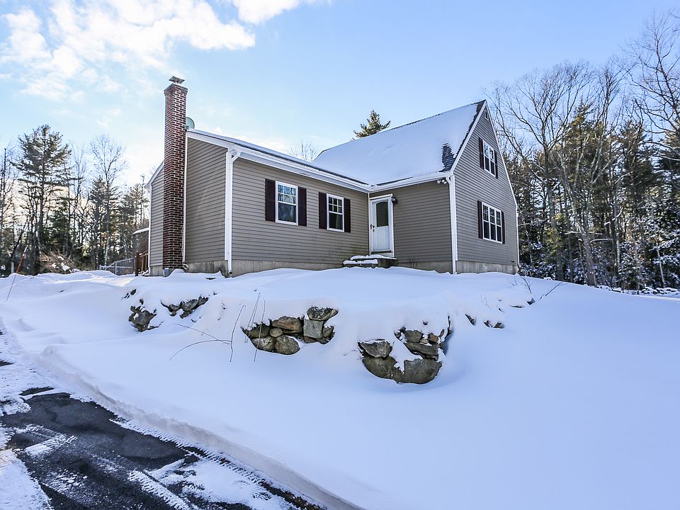 Auburn!!! Good sized cape with bump out, sent on 2.0+/- acres across from Calef Pond! Home features 3 bedrooms, and 1 ½ Baths, over sized living room and a wood stove as a second heat source. Hard to find, first floor master BR!!! Relax on the over sized deck/patio area in the back yard, HUGE yard both in the front and rear!!! Plenty of room to entertain and room to expand on the lot if needed!!! Great value, the lowest priced house in town!