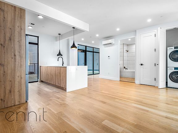 HUGE Private Deck! Washer Dryer in unit! Modern Condo-style 2 bedroom apartment unlike any other in Brooklyn. Discover the exceptional living experience offered at 580 Classon, where these units were meticulously designed with condo owners in mind. Each unit features floor-to-ceiling windows, providing abundant natural light and stunning views. Enjoy the luxury of a private terrace accessible from both the living room and the master bedroom, creating an ideal space for relaxation and entertainment. The chef's kitchens are equipped with stylish islands and breakfast bars, perfect for culinary enthusiasts. offering comfort and convenience. Additionally, this elevator building provides amenities such as a fully equipped gym, a secure bike room, and a package room, ensuring a convenient and well-rounded living experience.