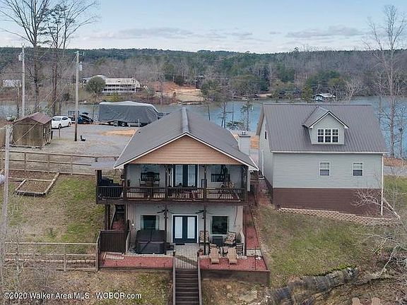 SMITH LAKE/ARLEY, 4BR/3.5BA Lake Front on the best section of Smith Lake, Custom wood through out entire house, gas FP, SS appliances, vaulted ceilings, with a custom bar & entertainment room in a huge basement w/a walk out patio that has an amazing hot tub & an out door FP with incredible views second to none. New free standing garage w/guest suite above and bathroom and prepped for another kitchen to make an apartment or in-law suite. Stunning views, Boat dock with boat lift and two jet ski ports and a total of over 640 w/f on deep year round pristine water. Incredible fenced in area to accommodate several dogs. This is a must see!