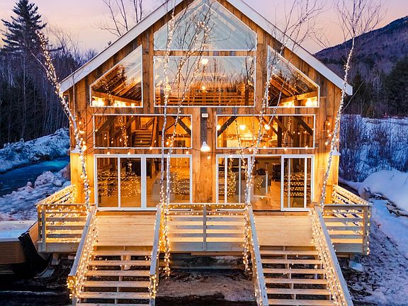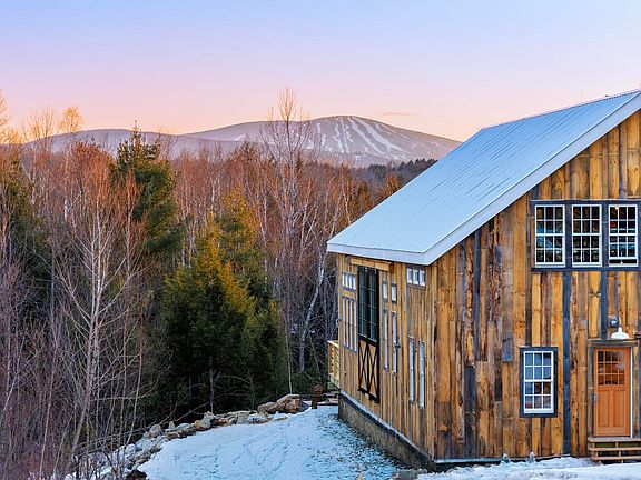 Tucked away in a tranquil setting, this newly constructed 3-bedroom, 2-bath barn-style residence is a masterful fusion of heritage & refined elegance, situated on 5.4 pristine acres. Absorb the beauty of reclaimed exposed overhead beams, while expansive floor-to ceiling custom-crafted windows capture mountain vistas & bathe interiors in golden natural light. Large sliding doors open to the melody of a gentle brook & surrounding woods, creating a sense of calm. Step into an expansive open floor concept, with dramatic ceilings that amplify the home’s sense of scale. The Shaker style inspired chef’s kitchen is well equipped with new Unique brand appliances, salvaged soap stone sink, open cabinetry & a custom breakfast bar. The dining room is furnished with a refurbished-custom dining table, creating the feel of farm fine dining. The primary suite is a true sanctuary, featuring a spa-inspired ensuite bath with striking VT green slate walk-in shower, clawfoot bathtub, artisan sink, & curated furnishings that exude warmth & sophistication. Accompanied by a loft that serves as a bonus room or office, the 2nd level adds a spacious dimension to the home. Two additional bedrooms offer generous space for family or guests, with views of the surrounding woods & mountains. A luxurious bathroom features a vintage sink & a free-standing tub. Every space is thoughtfully designed to offer a lifestyle where nature’s beauty and exquisite-yet rustic craftsmanship meet. Owner is licensed realtor.