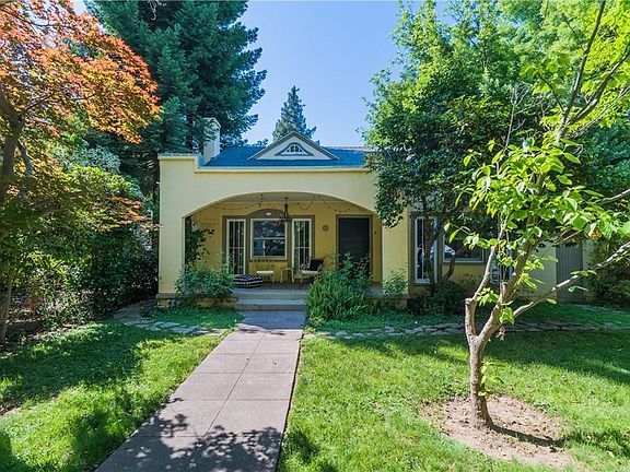 This is a charming craftsman home, well loved! This is it, the place you will want to call home when you have the desire to stroll downthe shady sidewalk to downtown Chico, Farmers Market, or our beautiful Bidwell Park. This home boasts large windows that reflectthe beautiful heritage landscaping. Fireplace with a wall of built-ins. Built-ins also in the formal dining room, rich wood floors, covedceilings, simply beautiful! Indoor laundry and a bright and light office. The kitchen has a built-in breakfast booth! Yes, there is more!Backyard is private, with an in ground swimming pool. Alley access with a shop/garage. Small private patio off the side of the housewith a gas BBQ hook up. In the early morning or late evening enjoy your front porch and relax. Truly a one of a kind "home sweethome"! Newer roof, windows, AC & more!