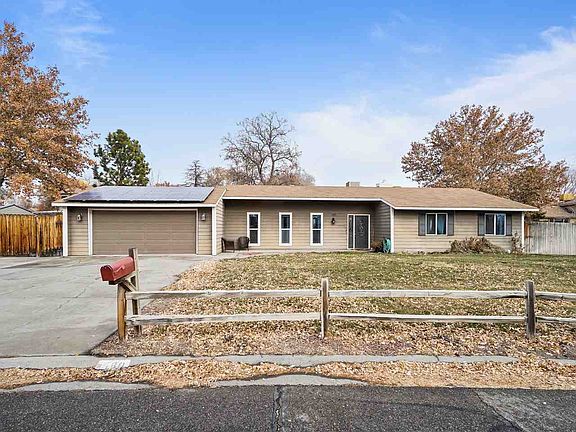 Beautiful and Recently Updated Rancher - 3 bed, 2 bath, 2 car garage w/220. Light and bright, lots of windows to bring the outside in. Big master suite with walk in closet & bath. Spacious Vaulted great room with wood stove, ceiling fan & sliding glass doors that take you out to the private fully fenced backyard with covered patio. Gated RV Parking on a 40 x 15 concrete pad, full mature landscaping. Solar Panel System provides significant cost savings on electric bill - included in purchase price, conveys with house at closing. Updated kitchen, master bath and paint. New Luxury Vinyl Tile throughout. New swamp cooler recently installed.