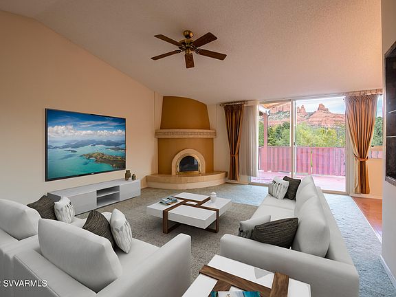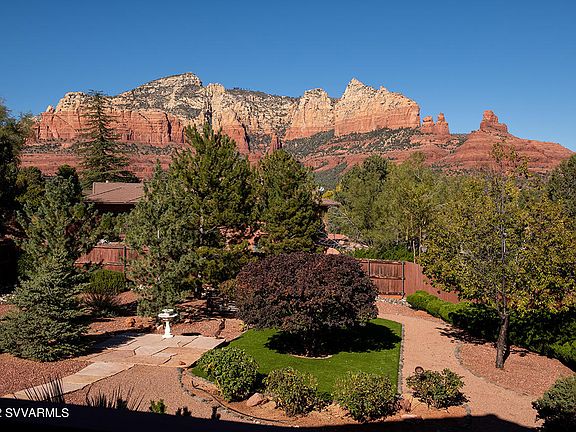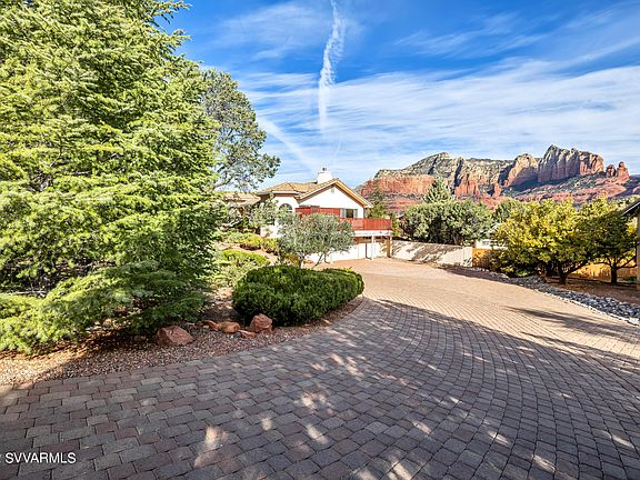 UPTOWN SANCTUARY with sweeping unobstructed HUGE RED ROCK views of Steamboat, Wilson Mountain and Brin's Mesa!! SPACIOUS and DESIRABLE living with an exceptional floor plan on a sprawling OVER-SIZED LOT with mature native trees for privacy. Just minutes away to some of the best scenic hiking/biking trails in Sedona. No HOA, STR''s allowed. Spacious kitchen, exquisite custom wood cabinets and granite counter tops including island w/prep sink and breakfast bar. Cathedral ceilings with skylights illuminate the gorgeous and bright hardwood floors in great room area which includes kitchen, breakfast nook, bonus family room/study and continuing into the formal dining room Spacious Wrap around deck with easy access from main bedroom, dining room, family room/study and breakfast nook. Marvel at the astonishing views and lush green surrounding as you entertain family and friends HUGE 3-CAR GARAGE for your cars and toys complete with work station and storage galore Tastefully landscaped with native vegetation. The massive paver U-shaped driveway offers two access points with plenty of off-street parking plus room for an RV! Restore and relax in the EXPANSIVE fully fenced backyard. Build your dream pool with cascading waterfalls and hot tub. Massive storage area under rear deck for pool equipment and more. Main bedroom boasts large walk-in closet and dual vanities in bathroom, Jetted tub w/side door access and walk in shower Lower-level multi-purpose Studio (not permitted) with exquisite wood floors, tastefully designed kitchen boasting beautifully appointed granite counter tops and custom wood cabinets, full bath and washer/dryer Lower level finished studio included in square footage