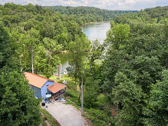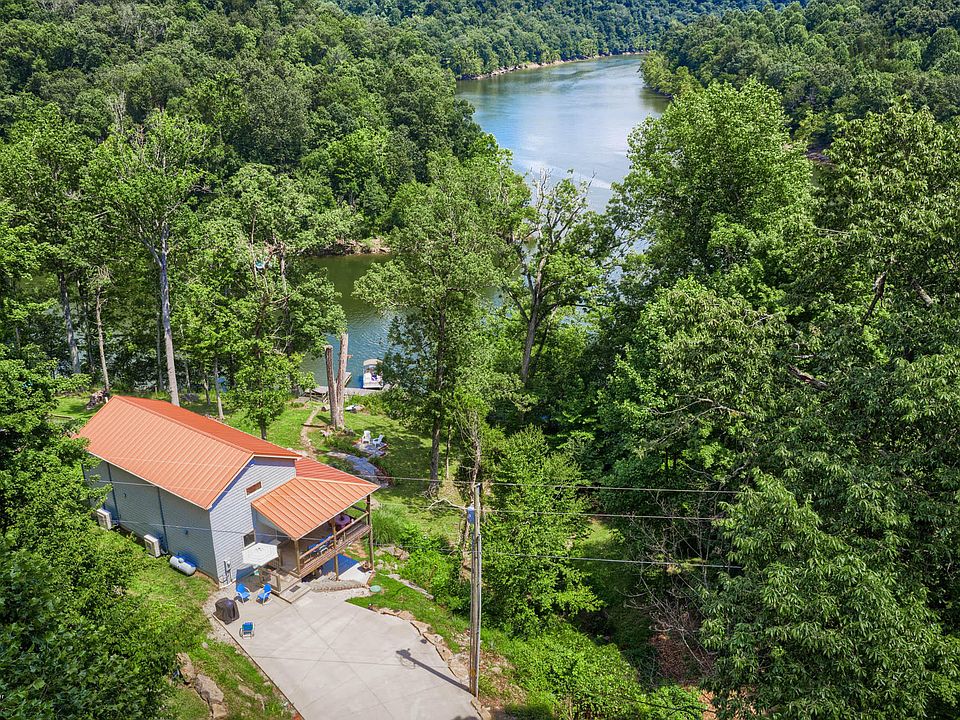 This lake front home has it all: dock; easy access to the water; newer home with upgrades; 24 x 36 building/ boat storage; parking pad with utilities for camper; 1.17 acres (3.5 lots) for privacy! Pull into this quiet road, onto the concrete drive to walk into this newer waterfront home. Big water views from every angle. Walk in the kitchen to all the upgrades - textured granite, Bosch gas oven, Whirlpool refrigerator, dishwasher, 9' ceilings throughout, recessed lighting, hardwood on main floor, engineered wood upstairs and super cool concrete floors in the walkout basement. 2x6 walls, foam insulation, pex piping, mitsubishi split units in each room & additional heating unit in the living room. Rooms are open. The garage & camper pad are on the two lots across the street.