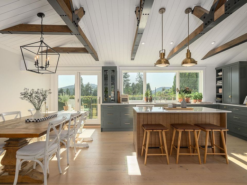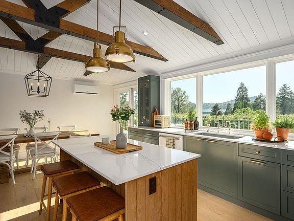 Straight from a HOME & GARDEN magazine! Step into this fully renovated creation thoughtfully designed w/historic charm. Perfectly suited for multi-generational living, home based businesses or wellness professionals, this unique property offers 3 distinct & versatile separate living spaces. Above main suite features a private ground level entrance ideal for welcoming clients in a comfortable, professional home setting complete w/breathtaking unobstructed ocean views. Main living area features 3 beds/2 baths, vaulted wood ceilings, exposed beams, stunning finishings & both ocean & mtn views! Below main features a gorgeous 2 bdrm legal suite perfect for family or extra income! An impressive 1460 sq/ft of patio/deck space completes this home w/each suite offering its own cozy outdoor retreat!