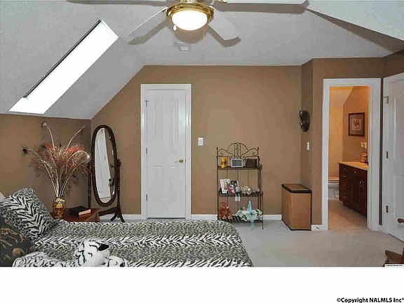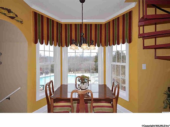 Stunning exterior design with paved circular drive & lovely landscaped lot, this custom home offers Formals, Great Room and Family/Rec Rm plus 4 bedrooms and baths & above ground pool surrounded by decking. Isolated Master Bedroom has glamour bath with sunken tub. Custom built-ins surround FP in GR which offers pretty mountain views. Well-loved home with seasonal views of Lake Guntersville. 3 yr old H&A units, new carriage style door on side entry garage that includes a storage closet.