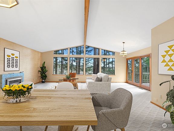 Amazing custom built home with gorgeous views overlooking Rainbow Bridge, channel & Cascades! Dramatic entry leads to stunning great room w/vaulted ceiling, center beam accent, cozy tiled fireplace & French Doors to spacious deck w/beautiful views! Kitchen is adorned with brick accent wall, warm wood cabinets, cook island w/seating, wet bar pass through to great room, new dishwasher and a free standing stove for those chilly winter mornings. Primary bedroom enjoys en suite w/sunken jetted tub, walk in shower & open built in closet area. Shelter Bay amenities include golf course, private beach, boat launch, marina, sports courts, clubhouse and more! Home is sold "as is" option to receive discount on lot next door if purchased with the home.