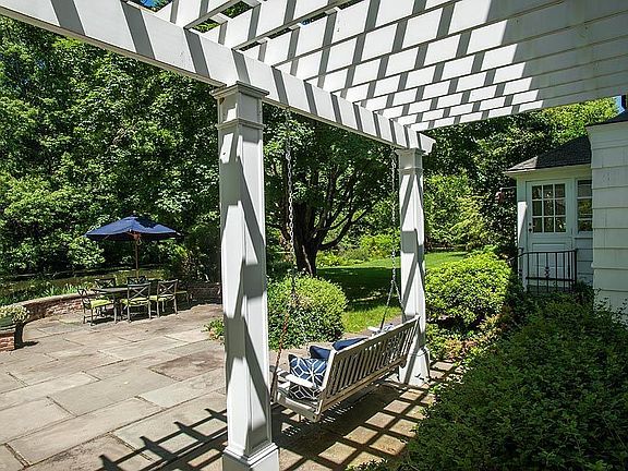 Emanating the classic elegance and character of 1930's architecture, this recently renovated colonial in the heart of mid-country is secluded behind tall fencing amid the captivating beauty of a picturesque, private setting on Horseneck Pond with a separate two-story guest house. The beautifully revitalized residence, with six bedrooms, six-and-one-half baths and five fireplaces, offers elegantly detailed formal rooms and comfortable family spaces, most with wonderful views of the pond. Both the grand living room with a fireplace and graciously scaled dining room with lovely recessed china cabinetry feature glassed French doors to a delightful year-round solarium with a wet bar and expansive sliding doors opening to a pergola-shaded stone terrace. Views of the pond are enjoyed from the well-equipped kitchen with a sun-filled breakfast area opening to the terrace. For casual gathering, an enchanting, beamed-ceiling Great Room walled with sliding glass doors to outdoor living spaces features a stone fireplace, built-in grill, a wet bar, antique hand-hewn paneling and handsome brick flooring. A separate entry main floor wing includes a brick-floored mud room and one bedroom with full bath, ideal for staff. Five bedrooms, four baths and a sky-lit laundry room comprise the second floor family quarters. Three bedrooms overlook the pond including the spacious master suite with a fireplace, large sitting room, custom-fitted walk-in closet and luxurious marble bath with his/her sinks, rain-head shower and whirlpool tub.The separate guest house completing this wonderful Lake Avenue compound includes a beamed-ceiling family room with fireplace, sky-lit living room opening with balcony, kitchen, one bedroom, one bath and attached two-car garage.