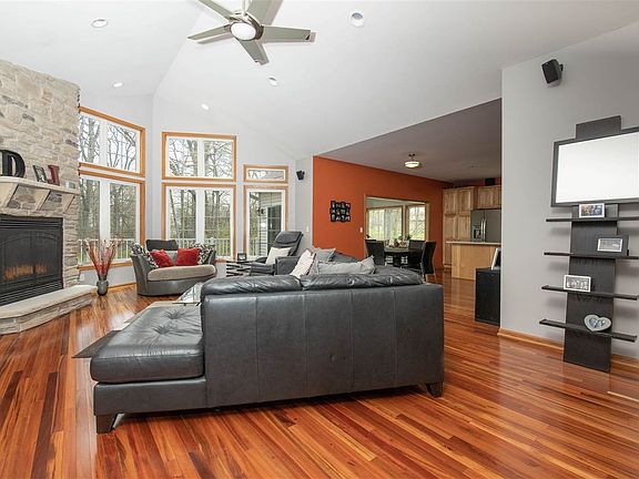 Elegant, spacious, quiet, Lake Summerset home in a wooded setting close to beach and lakefront parks. ALL FURNISHINGS ON-SITE INCLUDED. Impeccable care and maintenance for a move-in ready experience. The vaulted ceiling in the great room with it's oversized fireplace and surround sound system creates a relaxing and sonically pleasing environment. Enclosed four seasons sunroom off the kitchen gives you a birds-eye view of passing wildlife. House features list includes: 42" hickory kitch cabs. solid countertops, solid oak doors, in floor outlets, vaulted ceilings, 9' basement ceilings, walk in shower, jetted tub, ceramic bath flooring, tigerwood hardwood floors. paved driveway, hot tub patio and firepit.