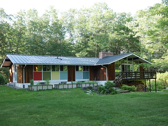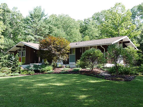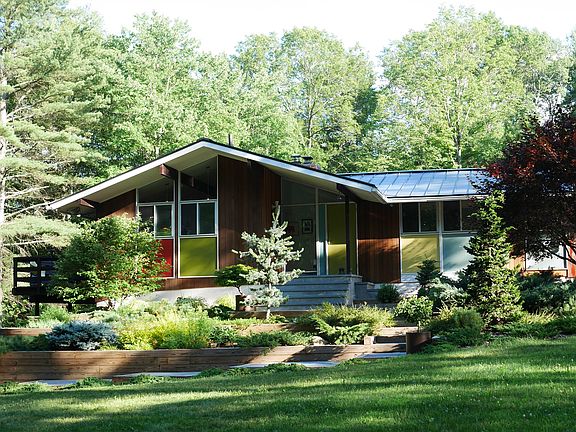 Tech Built Home by Karl Koch constructed in 1967 and beautifully maintained. Sitting on two wooded acres across from the Amherst Reservoir, adjacent to conservation land, and within walking distance to the Robert Frost and MM trails. Private; wooded; large yard; landscaped; deck; Redwood siding; unobstructed water view; open floor plan; geothermal; wood stove; studio apartment with separate entrance; large basement; mudroom; laundry room; walk-in closet; master bath; wood floors; garage and shed.