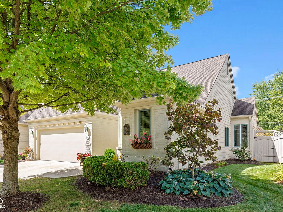 Gorgeous, well maintained, low maintenance, 1-level, 3BR 2BA home in The Enclave of Carmel. This open concept, light & bright updated home is move-in ready and features high ceilings, updated kitchen & baths, and nicely painted interior & exterior. The spacious Great Room with cathedral ceiling, 2-sided gas fireplace and lovely windows overlooking the backyard. The Kitchen has been updated with fresh white cabinets, granite countertops & stainless steel appliances. Adjacent Dining Room offers plenty of room for entertaining. The cozy Hearth Room enjoys the 2-sided fireplace and leads to the deck and backyard that features privacy fencing, lovely landscaping and retractable awning for shade. Primary Bedroom is spacious with updated ensuite bath and walk-in closet. BR 2 is in a private part of the home with walk-in closet and adjacent Bath. BR 3 features built-in cabinets & shelves. HOA cares for lawn mowing & fertilizing, mulch & weed spraying, plus snow removal. Convenient to the Carmel City Center, the Palladium, the summer Farmer's Market, winter's Christkindlmarkt, the Monon Trail, Arts District, shopping, dining & more!