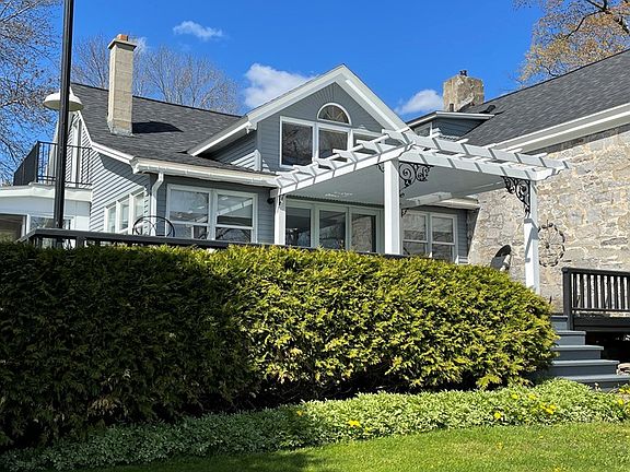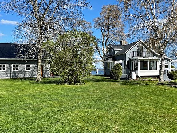This beautiful home is located on the shores of Lake Champlain in Chazy New York, and is situated on one and a half acres. Sixty seven feet of lake frontage is ideal for swimming, boating and year-round excitement! The stately 1830 stone construction home has added living space including a beautiful sun room with ceilings to the second story. The master suite overlooks the sun room and it's balcony overlooks the grounds. The 30' x 26' two-car detached garage has a large loft ideal for storage, and has an RV parking spot with a power point. The grounds include a 25' x 41' workshop with 100 amp power service, and a 15' x 37' storage area. The greenhouse is a nice addition to start plants for the raised-bed garden adjoining the workshop. The garden has water access and is surrounded with perennial flowers. The doll house is a magical place for children to play! There is even more storage in a separate building at the back of the property.