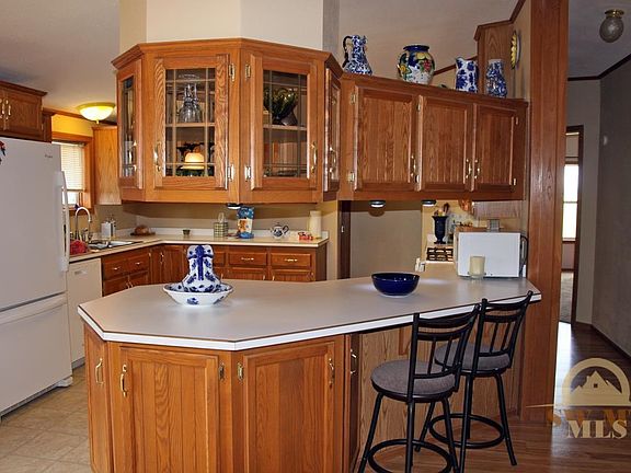 Wonderful horse property with astounding views! Cute one level home, great floor plan with southern explosure & newer upgraded flooring. There is an east side deck that is very protected & also a south side deck off the dining area. An amazing 15' geodesic greenhouse with additional gardens. There is an 1800 sq ft shop with all the bells & whistles, a handyperson's dream with 12' overhead doors for your RV or other large vehicles or projects. End of the road location. Fenced yard & many other amenities.