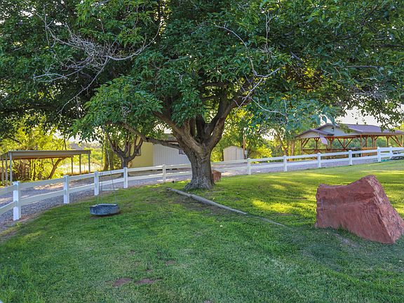 Rare opportunity to own a nice custom home with acreage and grandfathered water rights and creek access! This well-built home features an open floor plan with porcelain tile throughout. Large country kitchen with hickory cabinets, huge walk-in pantry, built-in wet bar and custom wine rack. Oversized family room with large fireplace and niche area. Enjoy summer nights sitting out on the brand full-length deck and top it off by sleeping in the 4-season porch! Large master suite with two smaller guest bedrooms. Horse Lover? Two covered stalls, riding arena, large pasture and tack room. Other buildings include a large covered parking structure, sizeable shop building and secondary covered parking structure. Not many properties like this on the creek side of Page Springs!
