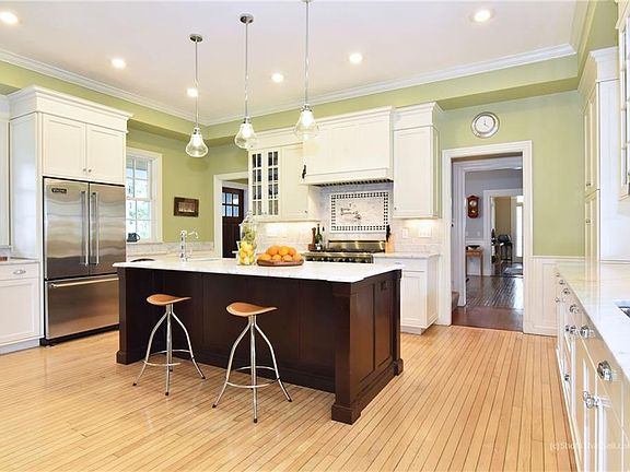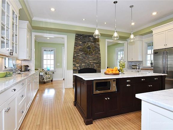 This stunning 1862 colonial in the heart of Quidnessett has undergone a total renovation. Perched on 1.2 acres sits this 3 level home with mahogany wrap around covered porch perfect for enjoying those seasonal nights outdoors. Open the French doors to a lovely breakfast room which flows to the amazing kitchen hosting an abundance of Brookhaven cabinetry, marble countertops, stainless steel appliances, oversized island and stone fireplace creating a fantastic entertaining space. Hardwood floors and floor to ceiling Pella windows take you throughout the formal dining room, formal living room, family room and home office. Main foyer showcases original dutch door as well as original bannister. Master suite has gas fireplace, walk in closet and beautiful bath featuring clawfoot tub and separate shower with gorgeous mosaic tilework. The main master suite also has a private staircase down to the kitchen. There is a second master suite at the opposite end of the second floor with new bath and walk in closet. Two more large bedrooms, full bathroom and laundry room complete the second level layout. Take the staircase up one more level to find 5 additional rooms currently laid out as home office, home gym, play room and two guest rooms. This amazing property has 6 zones of natural gas heat and central air, town water and a new 3 car garage. Truly special!
