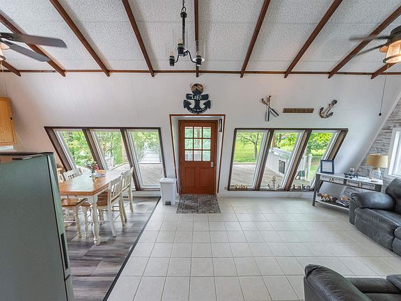 Are you kidding me! This cozy little cabin with 648 square feet and a 341 square foot covered porch is an absolute doll house. With a open concept living and large windows this cabin lives big. The 2 bedrooms and newly updated full bath on a quiet cul de sac let you sleep in, and the bright living room and kitchen help you wake up to lake living in just the right setting. This fully furnished home is ready for your to pull you boat up to the boat house, that holds 2 pontoons and take a short walk to the newly poured concrete patio that is perfect for a bags tournament or set up a smoker and feast. Lots of new in this home built by Holmes Construction in the 70's, including electric service, new water main, new concrete patio, roof, siding and porch in 21', vinyl plank floor in kitchen, and new split unit to be installed. At this price the seller is even willing to put you in a washer and dryer hookup in bedroom. The boathouse is grandfathered in and can be reskinned. Seller currently VRBO's this home for $140/night for $175 on the holidays and renter pays taxes and $75 cleaning fee. Lots to see on these 3 lots. Ask for your private showing today.