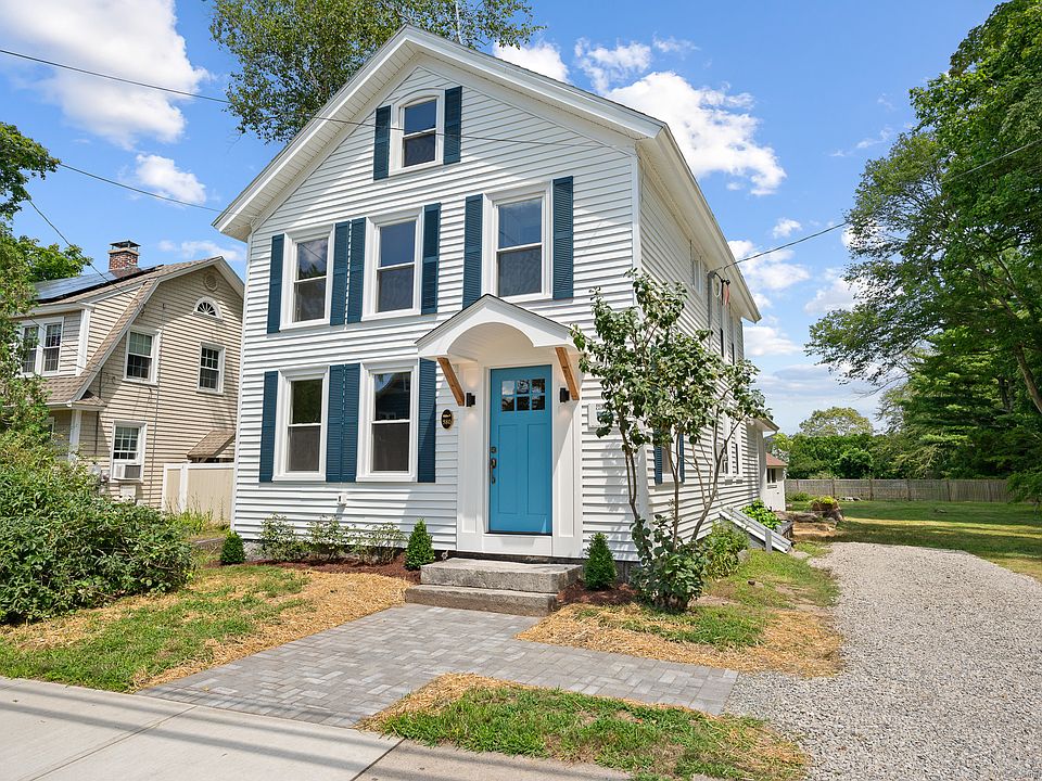 Historic Charm, Modern Amenities featuring a perfect setting on .26 acre to add a garage, additional parking or an addition to this stunning 4 bedroom, 2.5 bath. Originally built in 1853 has been thoughtfully remodeled to enhance some of the home's original beauty and incorporate modern amenities. The newly remodeled property features original hardwood flooring and woodwork including the stairway and banister. All new Harvey windows with open top and bottom for easy cleaning. The kitchen features Ocean Blue Fabuwood cabinetry, under-cabinet lighting, new LG appliances, quartz countertops custom designed with a spacious 8x6 Butler's Pantry complete with pocket door to a conveniently located 8x5 laundry room. The main living space includes a breakfast bar complete with drink fridge and highlighted by wall cabinets outfitted with handmade glass panels original to the home and flooring made of bricks preserved from the home's original chimney. The Parlor has a coffered ceiling and custom window panels incorporating original woodwork along with modern craftsmanship. The home has been fully outfitted with all new electrical and plumbing including a 200 amp electrical panel. The Primary bedroom features parkay style hardwood floor, hand constructed on site , walk-in closet with shoe shelving made from cedar wood. Adjacent to the Primary Bedroom is a half bath with vanity area with nature stone penny tile flooring. 2 of the bedrooms have vaulted ceilings, new hardwood floors. The 2nd floor bathroom has a spacious shower and large vanity as well as original hardwood flooring. There are 2 coat closets, one at each of the entrances with ample storage. The new rear porch creates an inviting entrance as well as outdoor living space. The large lot has been landscaped with perennial plants for easy maintenance and annual beauty and a vegetable garden ready for harvest. A brand new paver walkway welcomes you home and a new raised bed decorates the rear porch.