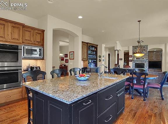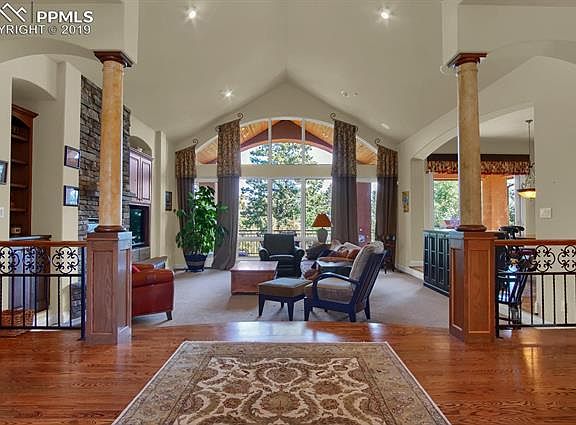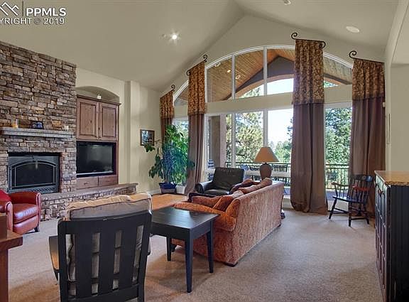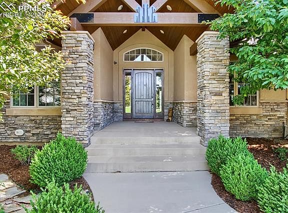 This spectacular home exudes the essence of Colorado living with a nod to stunning features like alder wood, gorgeous stone work and so much more! This custom designed Hein built home showcases unparalleled craftsmanship and a private setting. While nestled in the heart of Cheyenne Mountain with views that will amaze, you will appreciate the flat driveway and level lot, a definite plus for living on the mountainside. As you enter, you will be enchanted with the open and inviting floor plan with loads of light reflecting from all the glorious windows. Gourmets will delight in the well appointed kitchen boasting alder staggered cabinetry, granite slab, pantry, vegetable sink and stainless appliances. Colorado evenings will be well spent enjoying the covered Timber-Tec deck with in-wall speakers to take in the open preserve to the rear of the property. The master retreat is tucked away with treed privacy to the back of the home and boasts a wonderful master bathroom with travertine tile and smartly appointed walk-in closet. Meander to the basement with 9-foot ceilings and a walk-out patio that offers more warm and cozy living areas. The convenient wet-bar features a dishwasher, refrigerator with stylish built-ins for entertaining. There are two en-suite bedrooms and the additional two bedrooms share a Jack and Jill bath. The back yard is a park-like setting with mature trees, play areas and a lower patio to enjoy some additional outdoor fun. Other special features include: Pella Windows, over-sized three car garage, finished garage with epoxy floor and attic storage, central vacuum and main-level central air.