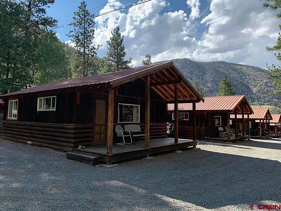 Cabin 1 at Pleasant View Resort offers a blend of rustic charm and practicality. Situated at the end of the cabin row, this unit enjoys a scenic setting with a stream along one side, providing a touch of tranquility and a glimpse into mountain life. The vintage furnishings and simple, cozy design create a welcoming atmosphere that complements the natural surroundings. The interior features an open-concept kitchen, dining, and living area, along with two bedrooms and a bathroom, making it both functional and comfortable. The covered deck is perfect for unwinding and taking in the peaceful views of the landscape. Though the cabin is part of a resort with multiple units, its location near the stream and the thoughtfully landscaped grounds help it stand out, it sits on one of the largest lots in the resort. It’s conveniently located just a short drive from the historic town of Lake City, where you'll find a variety of restaurants, shopping, entertainment options, and a medical center. Outdoor enthusiasts will enjoy direct access to the Alpine Loop and nearby fishing spots at Lake Fork of the Gunnison and Lake San Cristobal. This cabin presents a versatile opportunity, whether you’re seeking a personal getaway or an income-generating property through the resort’s rental and maintenance services.