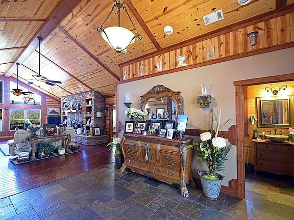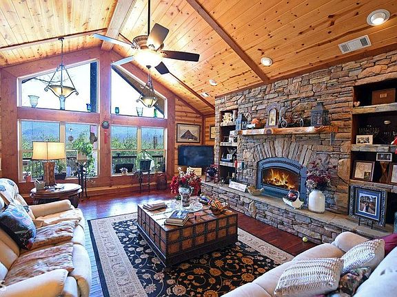 The "WOW FACTOR" You have Been Looking For! Stunning Custom Lodge Style Home Situated on Two Lots! Wide Open Concept Perfect for Entertaining! Step Inside the Grand-Doors.. Beautiful Hardwood Floors bring you to the Great-Room..Stacked Stone Vented Gas Log Fireplace w/ Blower! Kitchen & Dining Area are PERFECT for the Chef or Entertainer. Covered Back Deck Overlooking the Gorgeous Year Round Mtn Views! 2 Bedrooms, 2.5 Baths on the Main Floor + Laundry & Pantry. Master is HUGE w/ Gorgeous Bath, Tiled Shower, His/Hers Closets. Finished Terrace Level w/ Kitchen, Family Room/Game Room + Full Bed/Bath. "Every-Man's Dream Area" = 4 Car Garage + Workshop! Metal Roof, 'Wired for a Generator', Wooded Setting, Gated Subdivision, UG Utilities & Public Water. This Home is is NOT your Every-Day Mtn Home...Strike while the Iron is Hot! Virtual Tour.
