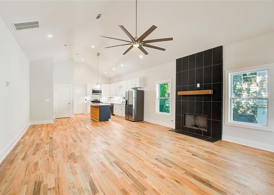 AMAZING New construction bungalow in Pittsburgh. This open floor plan takes the original bungalow style to a new exciting level. From the moment you walk into the home off the covered front porch, the light and volume feels warm and inviting. The living rm, dining rm and kitchen all have a vaulted ceiling and are open to each other. Real hardwood flooring finished in a neutral natural color runs throughout the home. The fireplace accented with a cedar mantel and tile surround is the perfect touch to the vaulted living room. The kitchen has an island that accents the white cabinets by being a blue Sapphire color with a cedar back panel. The door from the kitchen to a covered rear porch is perfect for BBQ'ing. The steps lead to a level and private backyard. Primary suite on the back of home is bright and features a large bath suite with separate tub and shower. The front bedrooms share a hall bath. 1 Car Off street parking. Minutes from Adair Park, ATL Beltline Trail, Pittsburgh Yards, Georgia State Football Stadium. Westside Breweries and the fabulous Boxcar Restaurant. Ask listing agent for the specifics.