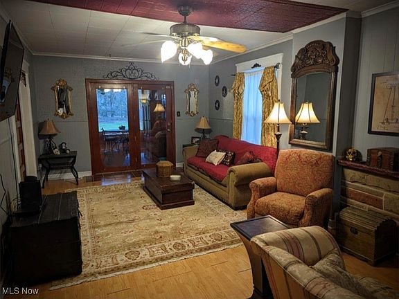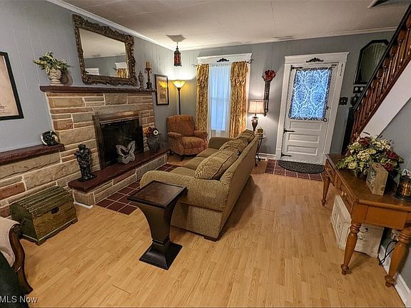 As you walk into the front door, you enter the roomy living room with a fireplace, a double closet with original wood doors, and high ceilings. Just off the living room is an enclosed porch with a vaulted ceiling and a door that leads to the fenced-in backyard. New septic in 2014, roof on upper level and back porch in 2019, the old chimney was torn down and rebuilt with new flashing and liner in 2019, well pump in 2020, and pressure tank in 2021. The formal dining room has built-in cabinets, vinyl copper-colored ceiling tiles, and a chandelier. Store your vehicles in the 3-car garage and have plenty of space left for extra storage. Conveniently located on a dead-end street and close to State Route 82!