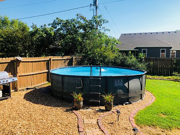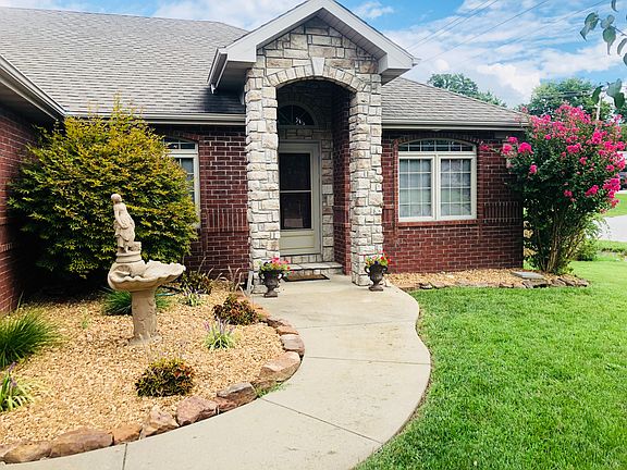 Beautiful brick & stone faced home with mature landscaping and curb appeal. A covered front entryway leads you inside to a bright and open floor plan. Natural light flows throughout the space highlighting a gas fireplace with thick white casing, mantle, and tile accents. Shiplap walls with open shelving and wood laminate flooring draw you into the spacious kitchen featuring granite counters, custom white cabinets, stainless steel appliances, and dining combo with farm house style chandelier. The master suite includes two closets, full bath with honeycomb tile, granite counters, & shiplap accent wall. 2 additional bedrooms, 1 full bath, & laundry room complete the home. Relax outside on the covered back patio with rock garden that leads to a pool and expansive back yard with privacy fence.