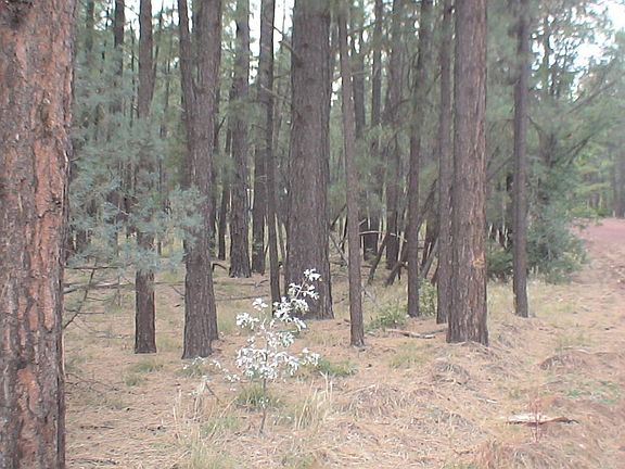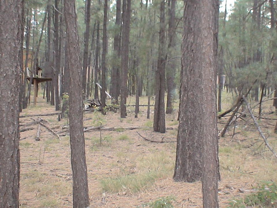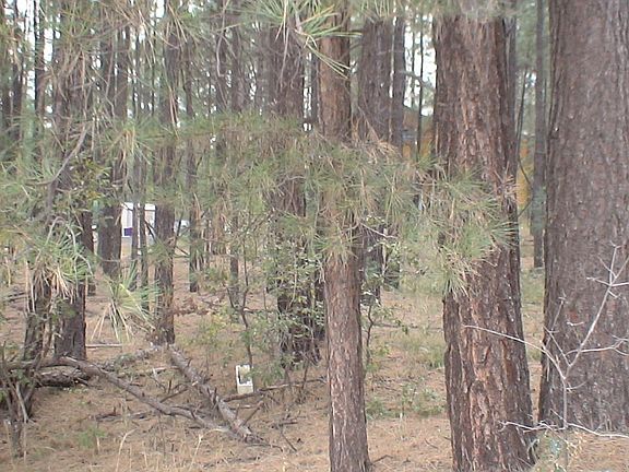 This is a beautiful, heavily treed lot in Pinedale Estates. Corner lot. Level lot with a very slight slope.