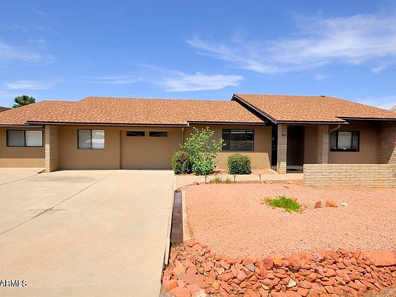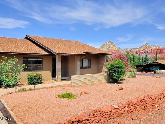 Single story, soft contemporary on a corner lot. Located in desirable west Sedona with no HOA. Breathtaking panoramic red rock views. Main house 3/2 plus 1/1 Mother-in-law casita with separate entrance and private patio. Live in one, rent the other or have plenty of private space for guests. So many possibilities! Open floor plan with abundant natural light. Gorgeous quartz kitchen countertops. Recent upgrades include new hardwood floors in entry, main living area and one bedroom; fresh interior paint, new entry door to main home and casita. Tile floors in kitchen, one bedroom and casita. No carpet. Enjoy your morning coffee or a meal with family or friends on a newer covered deck with with sweeping red rock views from Chimney Rock to Wilson Mountain and beyond!