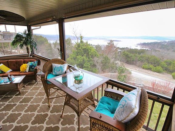 Majestic Table Rock Lake View!! Beautiful and Immaculate European style home. From the grand entrance and awesome view no detail overlooked- oversized travertine stone tile and beautiful hardwoods, see-through fireplace from living to kitchen, gas stovetop in island with hood, granite, high end appliances, screened porch, solar powered window blinds, LED lighting throughout, fabulous fixtures... and this is only the main level. Lower level includes wet bar, wine cellar, family room, game room, media room with high tech electronics, 3 additional bedrooms and an outdoor living space including built in gas grill under the covered pergola- as well as a fireplace and hot tub to keep you warm on cool spring evenings.