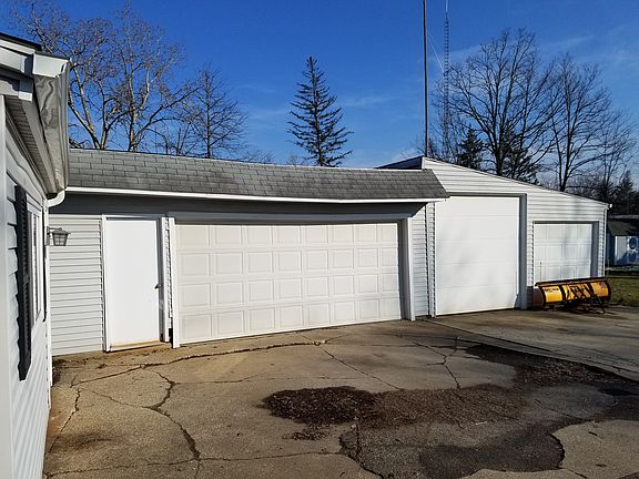 The possibilities are endless. This lovely 3 bedroom, 1.5 bath ranch features a spacious kitchen and dining room, living room w/fireplace, updated baths, kitchen and office. The 4 car garage 28' deep x 42' features a 16' door, 9' door and 8' door and a newer 200 amp service and 60 amp, 3 phase converter, compressor air, heater and water. 2 sheds remain and hot tub remain. Agent related to Seller. Seller to drain septic & hook up to City Sewer prior to closing.