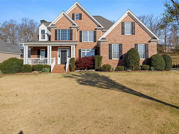 Come see this luxurious four bedroom, three and a half bath brick home in the established Carriage at Sykes Farm community in Asheboro that is for sale! Make this your private oasis and enjoy the heated saltwater pool this upcoming summer that is nestled in the backyard along with a pool house, lounging area, fire pit and waterfall! Step inside the home to see the high vaulted ceilings in the open living room with a beautiful stone wall fireplace and custom mantle. Formal dining room that brings in great natural sunlight, hardwood flooring throughout! Granite countertops in the kitchen with stainless appliances and breakfast bar area. The primary suite is complete with tray ceilings, spacious walk in closet located in the private bathroom along with a stand in shower and freestanding tub. This home is a must see! Be sure to schedule a private showing and make this your forever home!