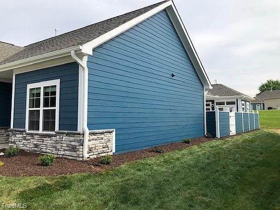 The Promenade III offers a spacious open floor plan, ideal for entertaining! Two bedrooms, two baths, and an oversized garage! This home offers a "Cooks Kitchen" with built-in SS microwave, gas range, and dishwasher, and SS chimney vent hood. The Owner's suite has a large walk-in closet, and private conditioned sitting room. Owner's bathroom has elegant tiled, walk-in shower, and transom windows. The kitchen features Quartz countertops, skylights and a huge walk-in pantry w/wood shelves. Under cabinet lighting accentuates the tiled backsplash and painted cabinetry. One of the best features of this home is the large Living Room & Kitchen space, beautifully lit, with large windows overlooking the home's private, covered courtyard. LVP in hallways, kitchen, LR, and den. Ceramic tile in bathrooms and Laundry Rm. The HOA takes care of the yardwork! Fantastic Kernersville location, just S. of I-40 & close to shopping, dining & healthcare!