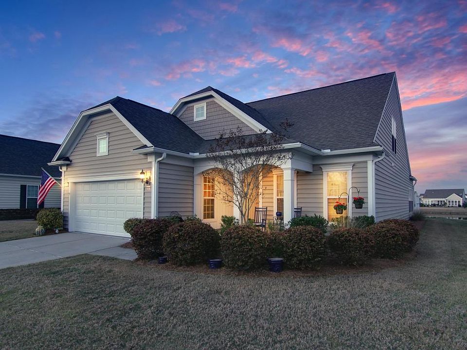 Water views, vaulted ceiling, luxury spa shower....this home truly has it all! Welcome to the popular Copper Ridge model, complete with a loft, upstairs bedroom and bath. As you enter, you're greeted by five inch wide hardwood floors extending through the foyer, living room, dining, kitchen, office and halls. A dramatic, vaulted ceiling and corner fireplace in the living room set this home apart. The open concept kitchen includes granite counters, 36'' maple cabinets with crown molding, a tile backsplash, stainless steel appliances and cabinet pull outs for storage. The sunroom streams in natural light and includes 18'' tile flooring. Stepping outside, you'll find a beautiful extended patio with stamped concrete and pergola overlooking a lagoon with lighted fountain. An additional rounded patio space is adjacent and a privacy lattice makes it your own outdoor oasis. Back inside, your first floor master suite includes a tray ceiling, double sink vanity and an oversized tile shower with frameless glass, built-in benches, a rainshower head, separate handheld sprayer, mosaic accent tile and tile floor. There is truly nothing like this in the community! A large walk-in closet completes the space. An additional bedroom, office and laundry room are located on the first level. Upstairs, you'll find a huge open loft overlooking the living room and an additional bedroom and private bath. Do you have family planning to visit often? Are you looking for a mancave or a hobby area? This is the home layout for you! Don't miss this stunning home in the Charleston area's premier adult community!