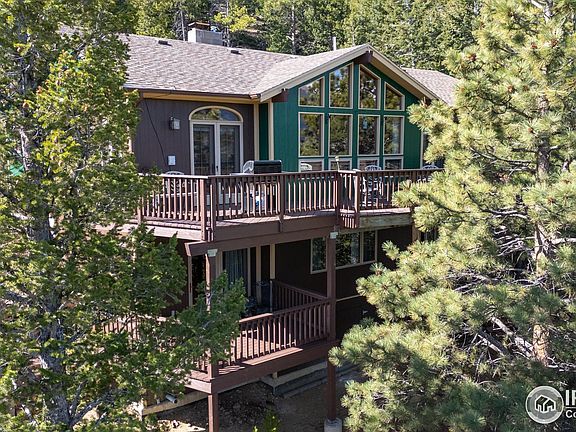 Perched high above the spectacular Estes Valley, at the end of the road and surrounded by forest, this property offers unbeatable views of Rocky Mountain National Park. Take them in from two expansive decks, the living room, and even the jetted tub in the primary bath thanks to perfectly placed windows. This is just one example of the many intentional design choices in this custom home, meticulously built by the previous owner-a master carpenter and local cabinet maker. In addition, this residence includes extra thick walls and ceilings for increased insulation and sound control, vaulted ceilings, custom trim with rare woods, and unique details such as arched doorways, columns, fireplaces and coves throughout, plus a fully fenced pet/garden area. It must all be seen in person to be fully appreciated! Upon arrival at this property, the upper driveway leads to an attached two-car garage and the main home entrance. Accessed via a second driveway and separate entrance, the lower level includes a family room with a built-in bar, gorgeous moss-rock fireplace, plus a bedroom and full bath. You will also discover a 50' x 36' detached workshop with space for six cars. Fully insulated and heated, it includes a loft with an office/guest room and three-quarter bath. It also has a lift and compressor (not included but negotiable or can be removed) and a professional vehicle paint booth. Make it an artist's studio, hobby room, woodshop, workshop, or home office. Use it yourself or rent it out. There's also income potential in renting out one of the levels of the home. A common thread throughout, everything has been thoroughly maintained, loved, and cared for by the original owner. You will also enjoy abundant wildlife, including deer, elk, marmots, eagles, hawks, and more. If you're seeking both privacy and the convenience of being close to all that Estes Park has to offer, this is the home for you. Relisted, it's now priced to sell and offers incredible value! Come take a look.