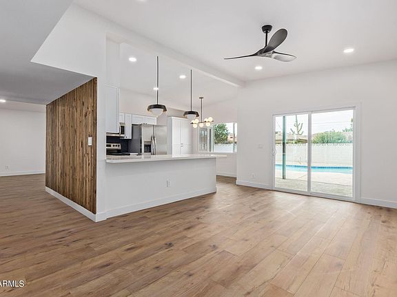You'll LOVE this beautifully remodeled Mid- Century Moderhome with POOL in a great Chandler location! Fabulous interior showcases large living & family rooms, wood-look flooring in common areas, tons of natural light, fresh neutral palette, recessed lighting, ceiling fans in all the right places, and vaulted ceilings that add to the airy feel. The gourmet kitchen offers sleek SS appliances, quartz counters, white shaker cabinets, black slate backsplash, and a peninsula w/breakfast bar. Enter the carpeted main bedroom to find a spotless ensuite with dual sinks & step-in shower enclosed by a glass door. Versatile den with access to the back. The backyard is super ready with a grassy area, covered & open patios, and a sparkling pool!!!