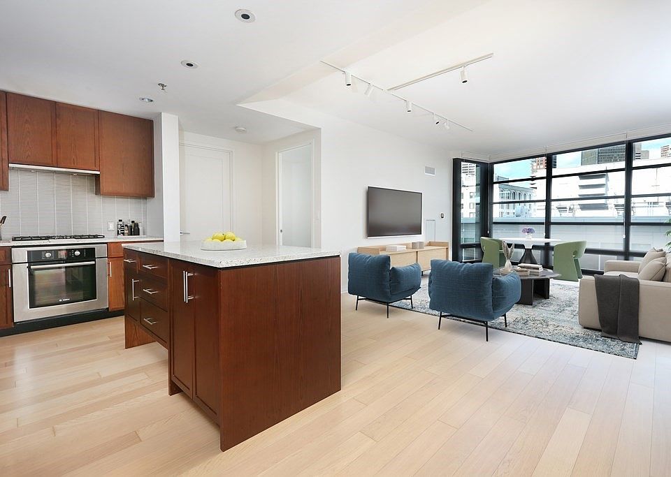 This two-bedroom condo is available at Millennium Place for the first time on the resale market! This home has been lovingly cared for by its original owner and is in total move-in condition. The home provides 1,162 square feet of living space with split bedrooms. The open concept kitchen is appointed with granite countertops as well as top-of-the-line appliances and an oversized island ideal for entertaining. Easy to furnish living room offers ample space for living and dining areas with floor-to-ceiling windows. The spacious main bedroom suite includes a walk-in closet plus an additional closet and an en-suite marble-appointed bathroom with a soaking tub and glass-enclosed shower. The guest bedroom is adjacent to the guest bathroom and includes a double closet. The laundry is in the unit. Great natural light. Millennium Place provides 5-star resident services, including a 24-hour concierge. Beautifully appointed amenity spaces and self park garage parking included.