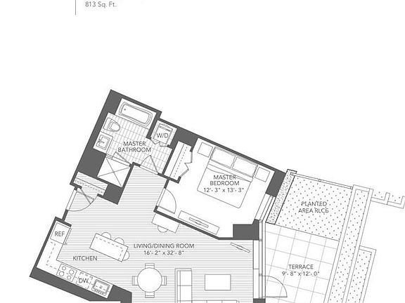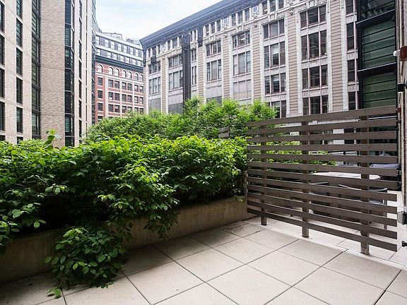 Gorgeous private outdoor terrace. Just painted and new hardwood floors! This is one not to be missed. This gorgeous southeast facing unit features 813 square feet of living space with an oversized living room plus open concept kitchen. The kitchen is appointed with custom cabinetry, stone counter tops, and top of the line appliances including paneled dishwasher and refrigerator/freezer. Bedroom features double closet and sunny view looking out to the garden. Millennium Place features 24-hour concierge with onsite management and maintenance. The club lounge features fitness center, yoga and massage studio, resident lounge with food and beverage service, private dining room, garden courtyard terrace, and private screening room. Exceptional location one block to the Boston Common, easy access to the red, green, and orange line T. Rental parking is available.