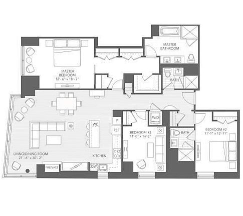 GRAND CORNER THREE BEDROOM unit at Millennium Place. This home features an exceptional floor plan with 1,908 square feet of living space. Oversized dramatic living room with floor to ceiling windows looking down Avery Street to the Boston Common. Sunny southern & western facing exposures. Oversized open concept kitchen features large island with exceptional built in storage space, top of the line appliances, custom cabinetry, fully integrated & paneled refrigerator/freezer & dishwasher, wine storage, and sunny south facing window. Gas fire place in living room. Master bedroom features a great layout with FOUR CLOSETS (including a walk-in closet) and a marble en-suite bathroom with double vanity, walk in shower, and soaking tub. Two spacious guest bedrooms, one features an en-suite bathroom. One valet parking space included. Millennium Place features 24-hour concierge service, fitness center, club room/lounge, private cinema, yoga & massage studio, kids room, & common terrace.