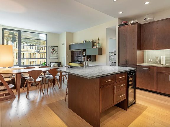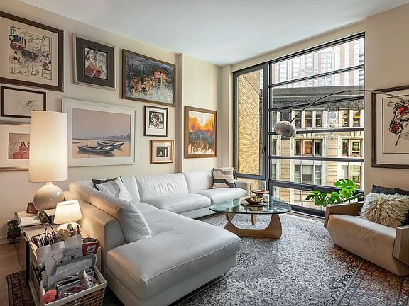This nearly 1,500 sq. ft. residence offers soaring 11-ft ceilings (exclusive to this floor and the penthouse level), abundant natural light, and a smart, open layout. Features include a custom kitchen with high end appliances, California Closets in all 6 closets, a Roche Bobois wall unit + large wardrobe in the master. The master bath boasts elegant white marble. The home includes exceptional in-unit storage plus access to the largest private storage unit in the building (great for storing large items).