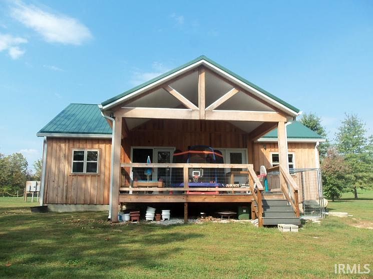 Custom built home on over 23 acres. Beautiful view of the woods surrounding the home. Large barn (24x36) with a fenced area for one or two animals. Upper floor of barn is a great area for storage. Additional "bunkhouse" (12x16) building with sleeping quarters in loft. Home has 9' ceilings with a vaulted ceiling in the great room. A wood burning woodstove with glass doors creates quite an ambiance. Lots of windows that showcase the surrounding woods & yard.