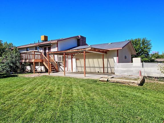 Classic Split-level 1908 sq. ft. home located in Garnet Mesa Estates on a 1/2 acre lot with a large fenced back yard with mature trees, lush grass and two excellent producing peach trees. Irrigation water. Plenty of Parking. Two car attached garage. Covered back patio. 4 good size bedrooms with a bath on each level. New Roof. Nice tile floor in the basement room with a wood stove for comfort. Access from the basement to the back yard. Laundry is also in the basement. With a little vision and work this would make a great family home or rental.